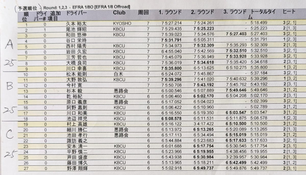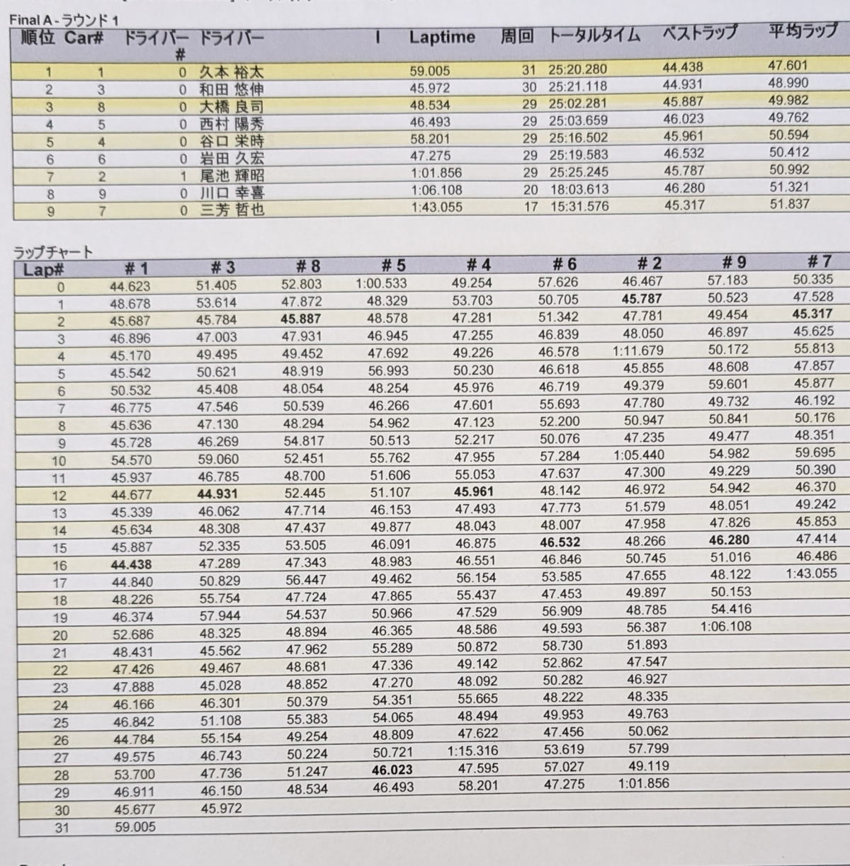 レースは予選3回 決勝は各メイン25分での総合結果となりました。