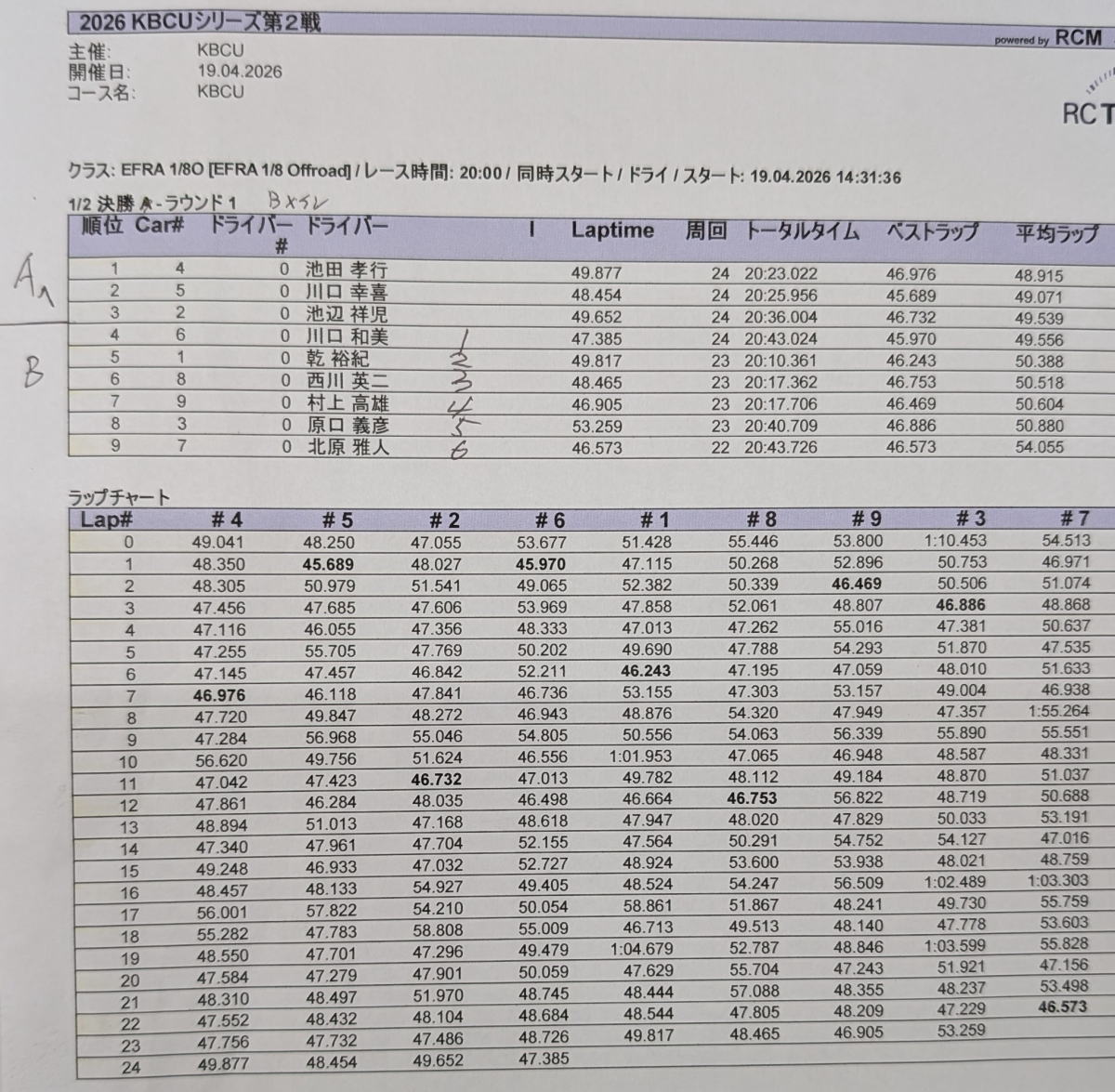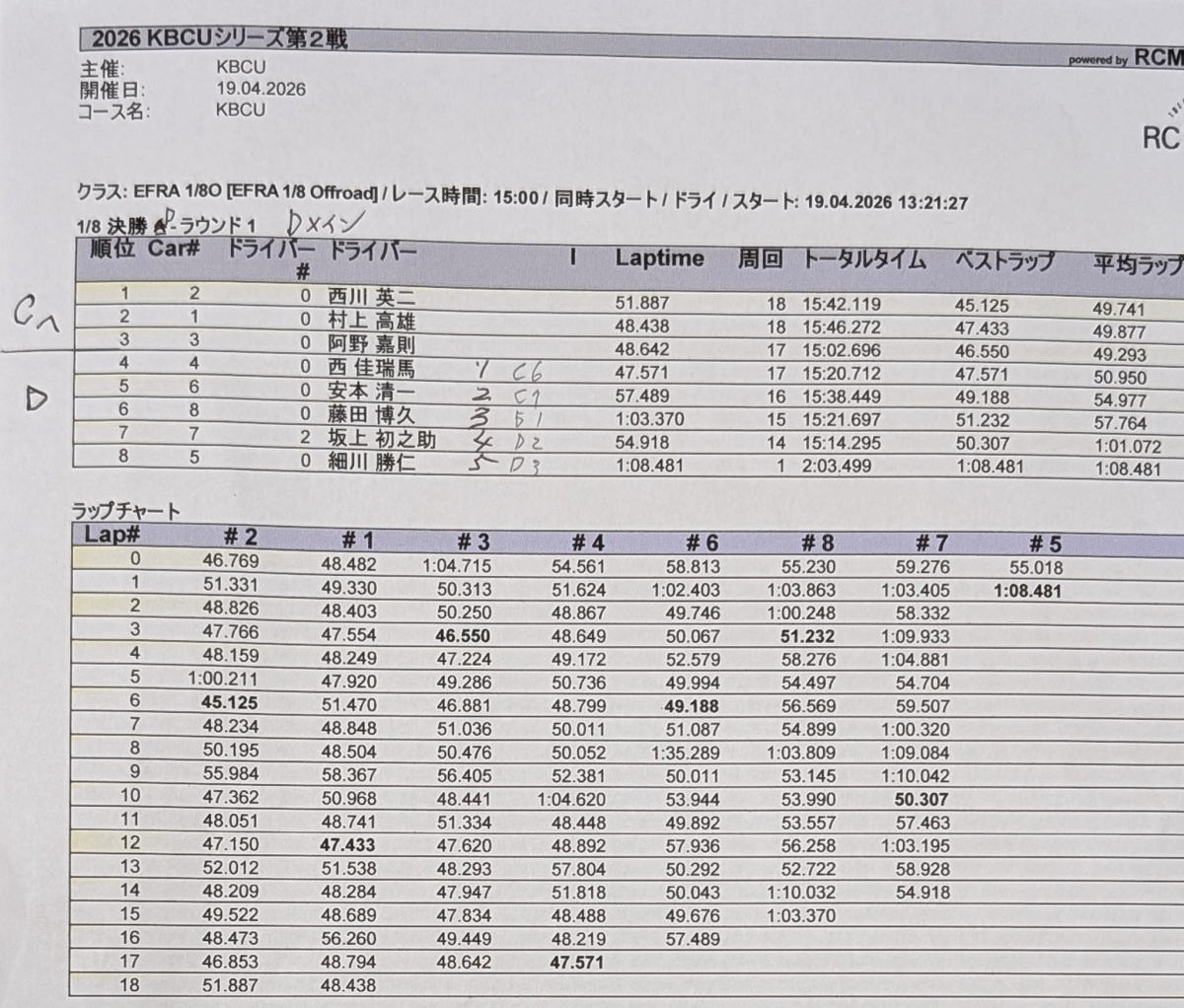 TQ 久本選手 7周5:08.647 ベストラップ 42.869(決勝でのタイムです)