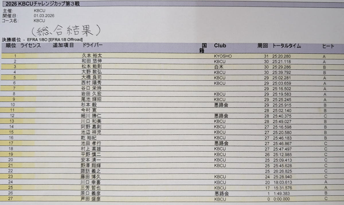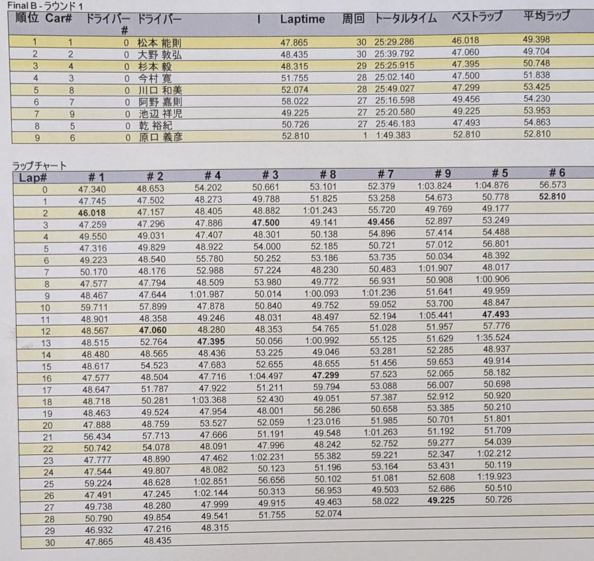 レースは予選3回 決勝は各メイン25分での総合結果となりました。